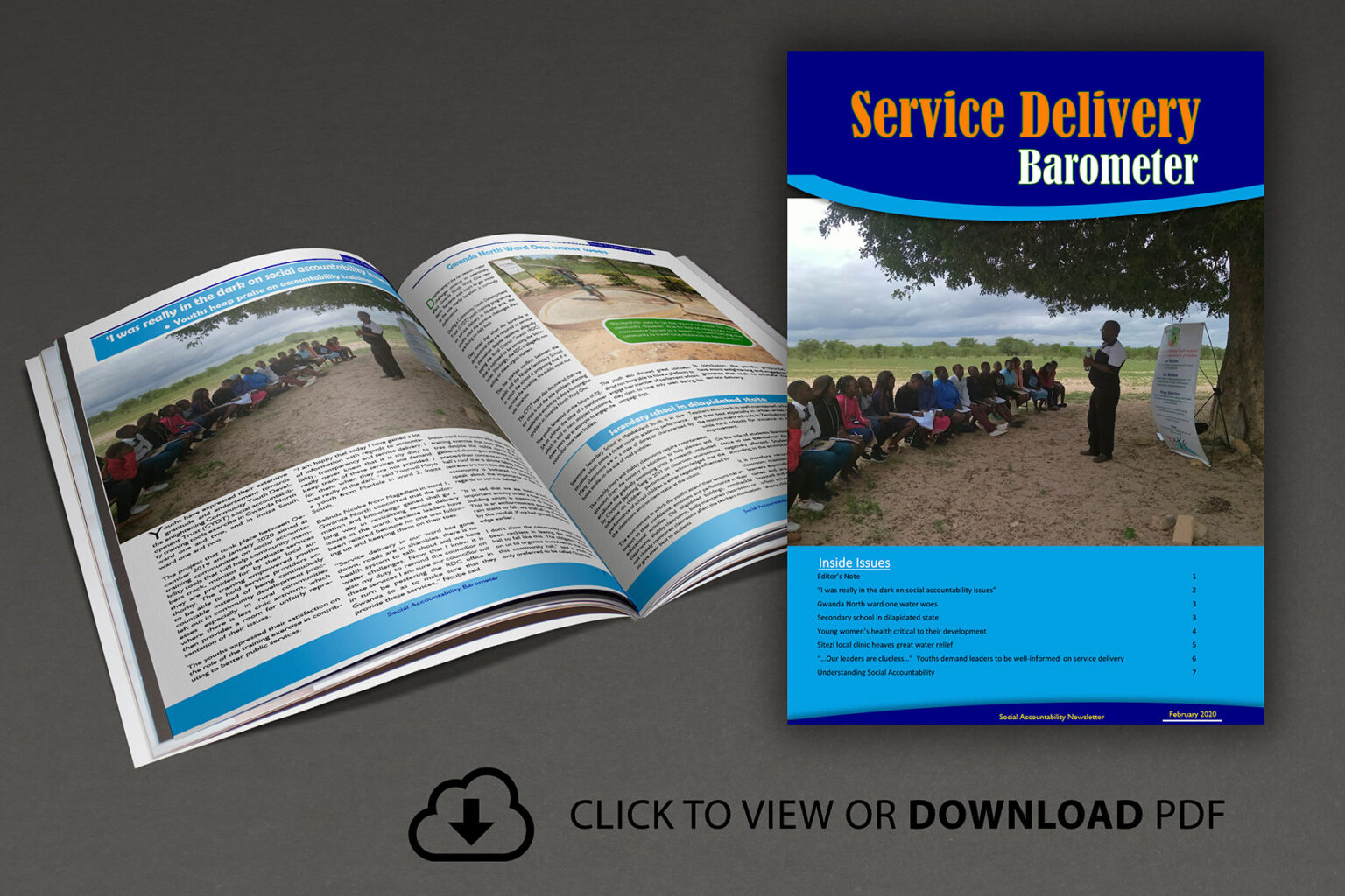 This newsletter highlights the importance of community advocacy, detailing on how different communities have used advocacy to their advantage. Topping the list of stories, is how Gwanda residents have been lobbying their local authorities for improved water security, especially noting that it is high time ZINWA hands over the water treatment plant to the local authority as they believe it is the only way that will end water woes in the small mining town. The newsletter also shares youth’s perspectives and insights on the state of service delivery in their communities seeing that they have been monitoring service delivery issues after having been capacitated on that skill by the organization. Furthermore, the Newsletter shows how the youth, empowered with accountability and lobbying skills have been compelling duty bearers from both local and national levels to fulfill their commitment on providing good service delivery……..