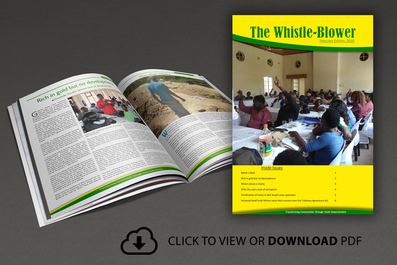 “As we continue with our fight against corruption, I present to you our 6th edition of The Whistle-Blower Newsletter. We continue making inroads in the fight against corruption in the mining sector through our lobby and advocacy approaches that have seen leaders joining our cause…”