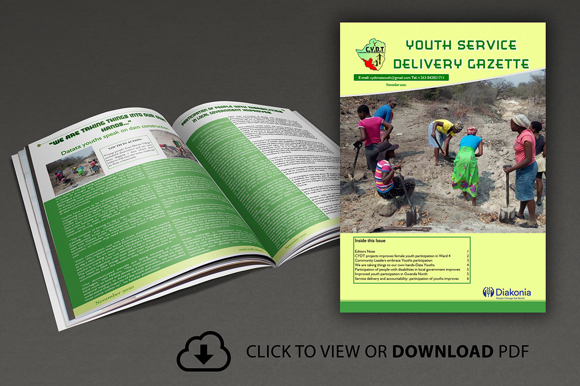 “Welcome to our exciting edition of the Youth Service Delivery Gazette newsletter. In a quest to achieve marginalised groups representation and participation in local government, the Community Youth Development Trust (CYDT) carried out a project sought to strengthen youth voice in local governance for further grassroots development.