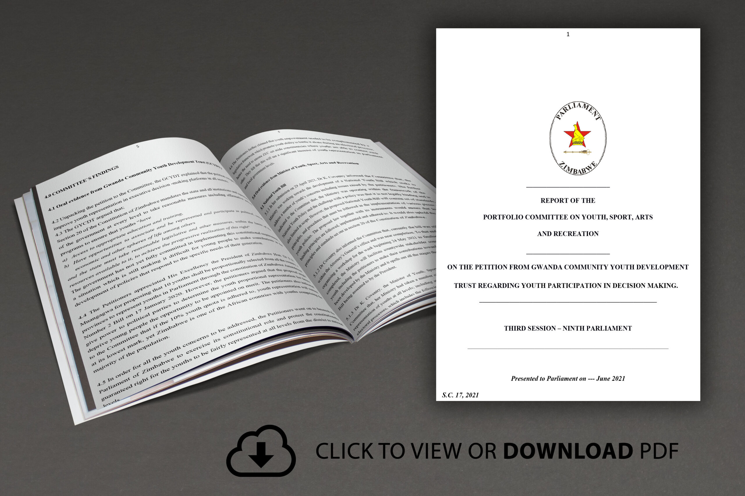1.1 Pursuant to Section 149 of the Constitution of Zimbabwe, the Gwanda Community Development Trust (GCDYT) petitioned Parliament of Zimbabwe on the need for exercising its oversight function and promote institutionalization of youth participation in all decision making sectors or platforms. Accordingly, the petition was referred to the Portfolio Committee on Youth, Sport, Arts and Recreation for consideration. Thus, the Portfolio Committee on Youth, Sport, Arts and Recreation considered the petition and resolved to inquire into the issues raised in the petition. This report is a summary of key findings, observations and recommendations on the enquiry into the subject matter.